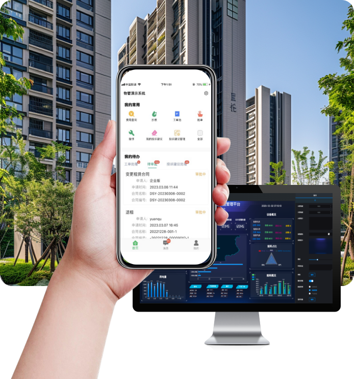 通过 PC 后台、业主小程序、员工 APP 三端协同,实现从房产管控到服务执行的全流程线上化,降低管理成本 30%+,服务响应速度提升 60%。