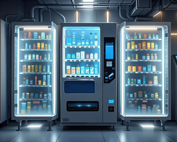 通过 PC 管理平台、手机运营商端(小程序 / H5)、设备端、用户 H5 端四端协同,实现组织权限管控、商品供应链管理、库存仓库联动、 设备点位远程运维、移动化运营(实时数据监控、补货处理)、终端智能交易(广告展示、分类购物)及精细化营销(折扣、优惠券)。